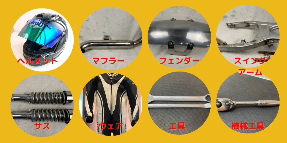 このように、当社ではバイク関連のものなら何でも買取査定を行っていますので、処分を考えている物がありましたら、お気軽にご相談下さい。